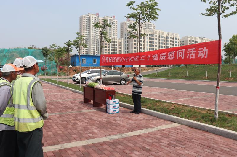 帶狀公園位于晉城市東南新區(qū),目前有我公司員工52人,分保安、保潔和綠化養(yǎng)護(hù)三個(gè)隊(duì)組。車一到公園,慰問小組工作人員就打開音響放起歌來,一下就把員工從緊張勞累的工作狀態(tài)帶入輕松的氛圍。一聲“大家辛苦了”,工作人員向公園員工致以親切的問候,把黨政工領(lǐng)導(dǎo)的關(guān)懷送到了員工的心坎上。