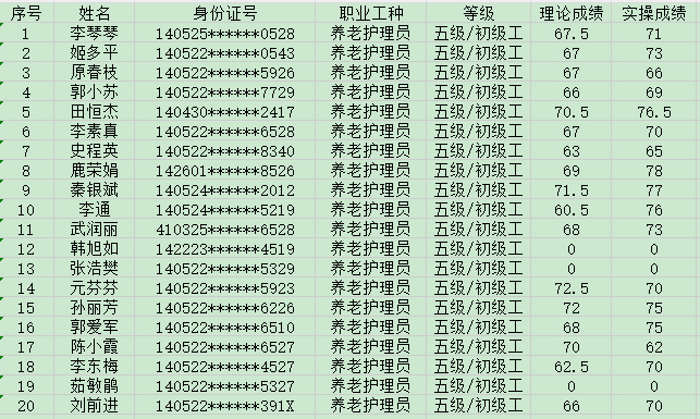 2024年10月14日第42批養(yǎng)老護理員初級認定人員成績公示